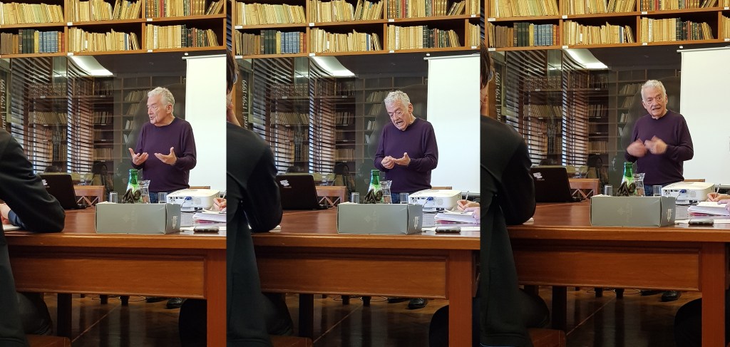 No dia 12 de abril de 2019, tive a honra de assistir à conferência que o Professor Hans Ulrich Gumbrecht (Universidade de Stanford) proferiu na Universidade de Coimbra, com o título Diderot’s “Materialism”: About the Potential of an Epistemological Affinity. O evento foi organizado pelo Programa de Doutoramento em Materialidades da Literatura.